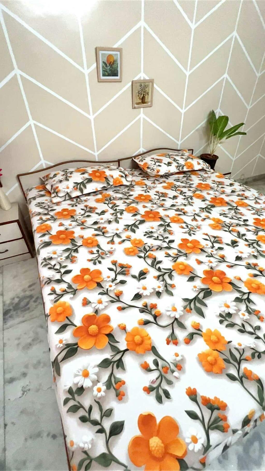 This beautifully crafted bedsheet features a stunning 7D printed design, offering a rich, lifelike visual depth that enhances any bedroom décor.
